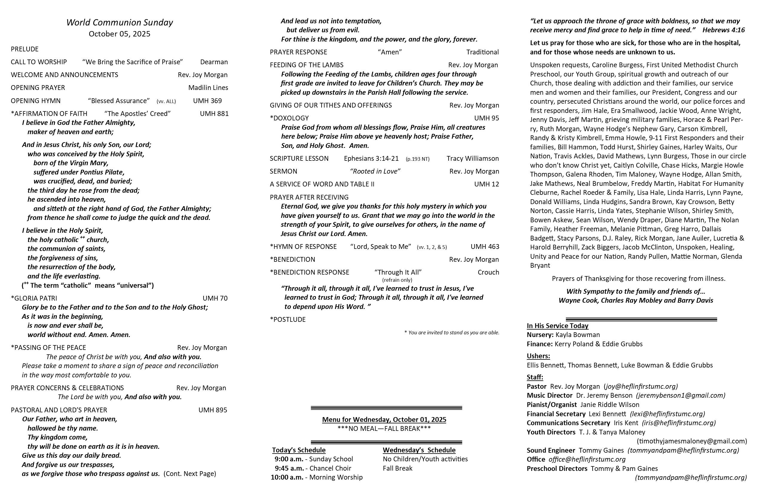 Bulletin for Hanging of the Christmas Green Service, December 01, 2024